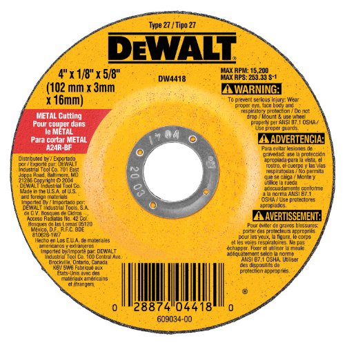 before decision to buy, I searches on online so long time. So I gathered a store that sells DEWALT DW4418 4-Inch by 1/4-Inch by 5/8-Inch General Purpose Metal Cutting Wheel and compare prices to. Some online stores offers me fast shipping.