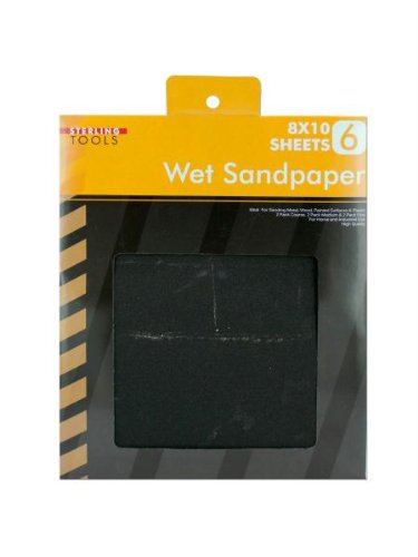 Ideal for sanding metal wood painted surfaces and plastic. Each set contains 6 pieces of sandpaper: 2 coarse sheets 2 medium sheets and 2 fine sheets. Great for home and industrial use. Comes packaged inside a hanging panel with a preview window. Sheets measure 8" x 10".Available in a pack of 25
